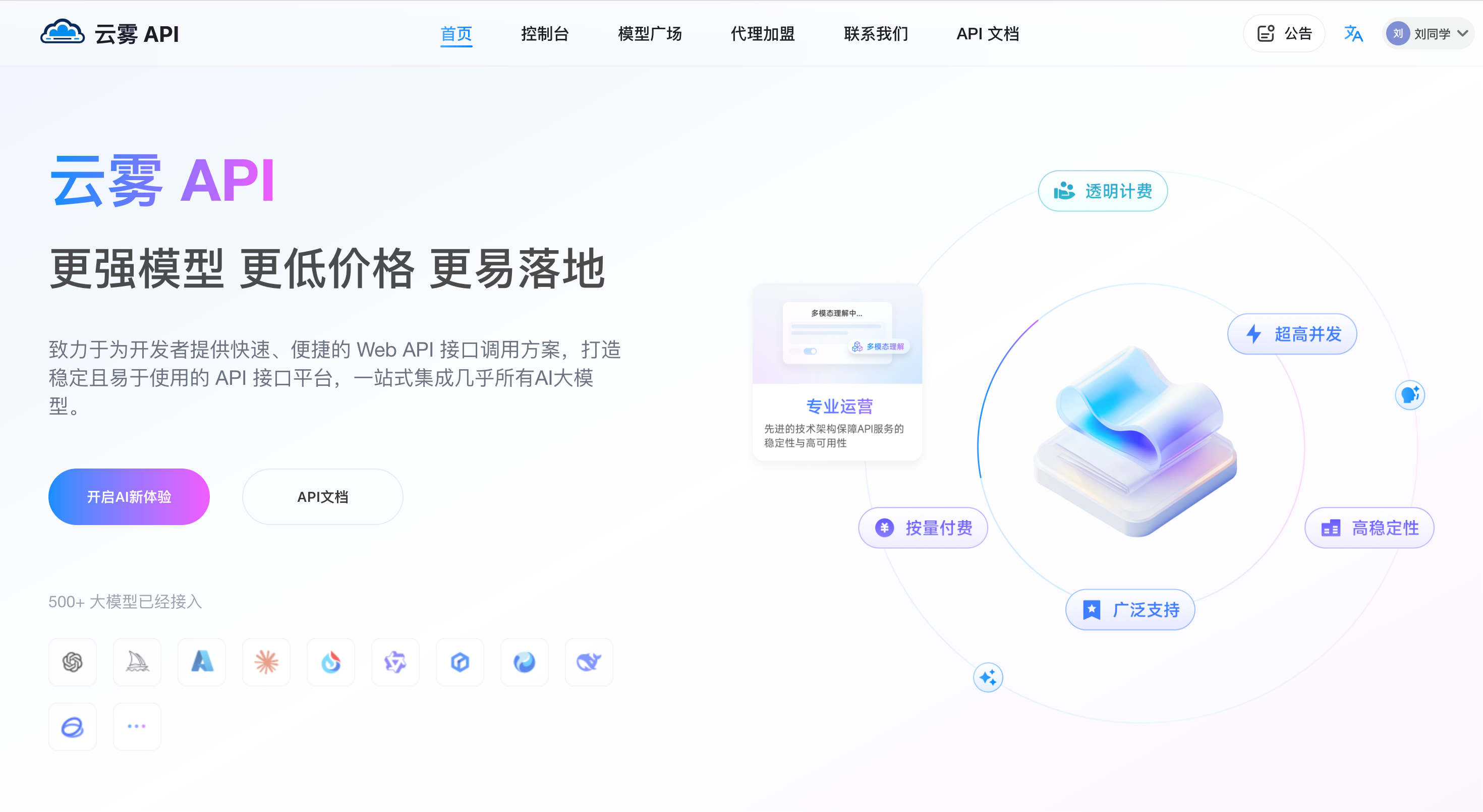 云雾API作为专业的AI模型聚合服务平台,提供了标准化的OpenAI兼容接口,让开发者无需直接对接火山引擎方舟平台复杂的原生API,即可快速接入Seedance系列模型。