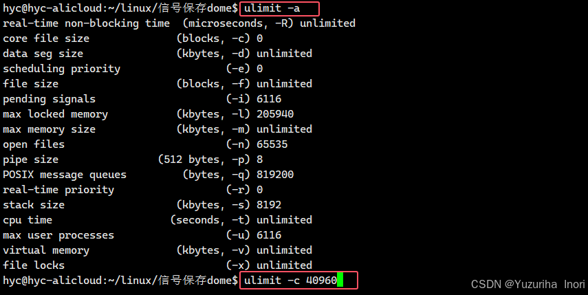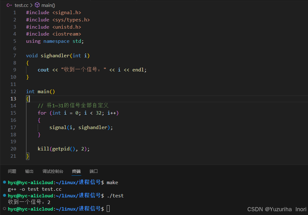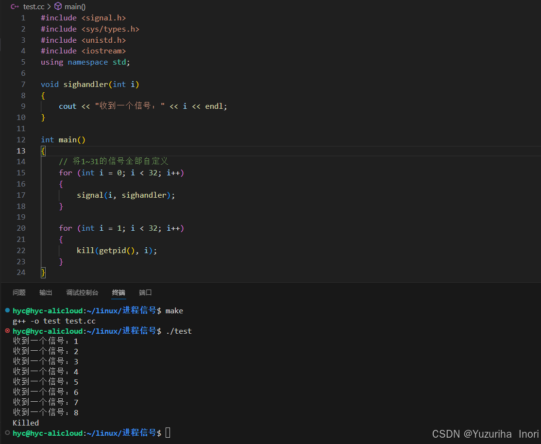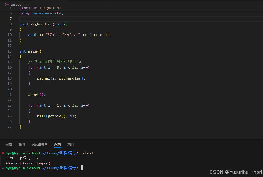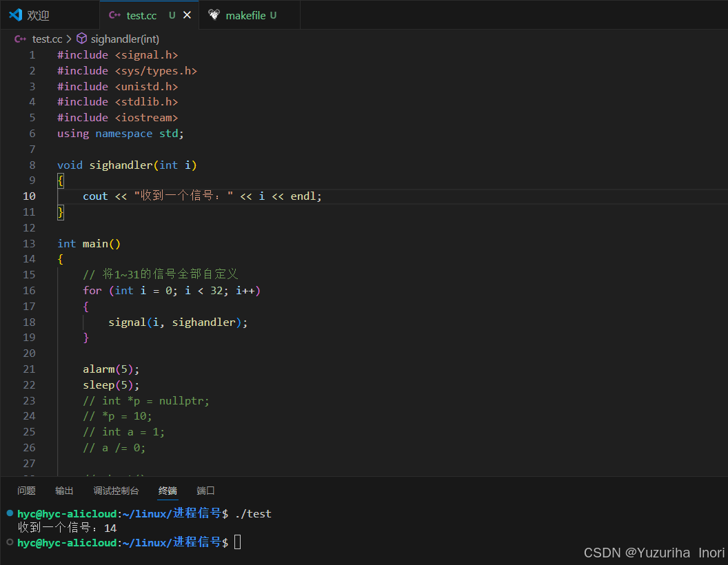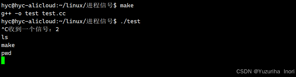 hyc@hyc-alicloud:~/linux/进程信号$ ./test