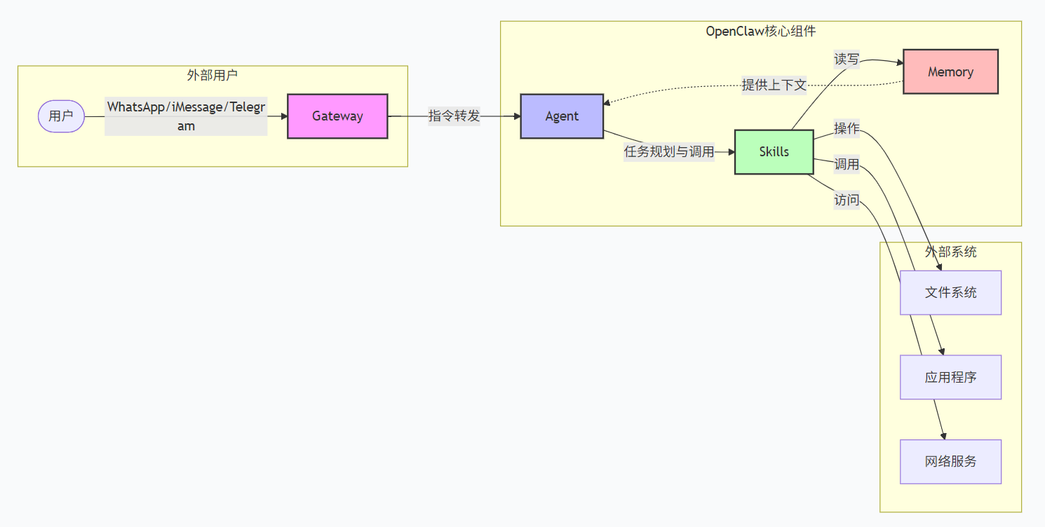 OpenClaw的架构并不神秘,主要由四部分组成: