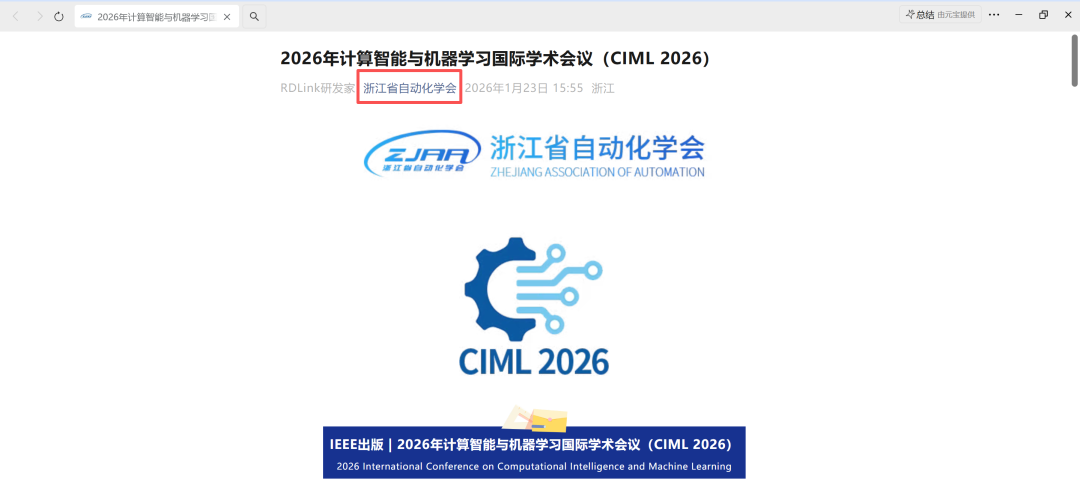 【摘要】2026年计算智能与机器学习国际学术会议(CIML2026)将于3月27-29日在中国杭州召开,由浙江水利水电学院主办。会议聚焦计算智能与机器学习前沿领域,包括联邦学习、图神经网络等方向,EI/Scopus检索稳定。投稿要求英文原创论文(4页以上),查重率≤20%,需提交查重及AI检测报告。投稿截止2026年2月28日,7个工作日内反馈审稿结果。会议官网:http://ic-ciml.co