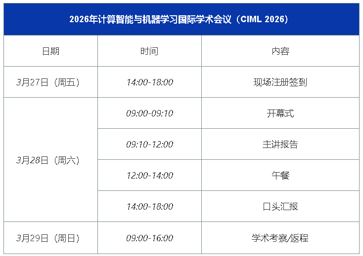 EI会议录用率高 | IEEE出版 | 2026年计算智能与机器学习国际学术会议(CIML 2026)
