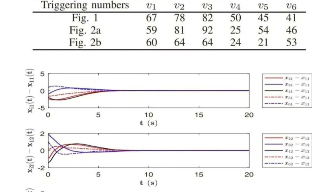 以一个存在非线性扰动的机械臂多智能体系统为例,机械臂的运动方程是非线性的。我们定义一个事件触发函数 $e{i}(t)$,当 $e{i}(t)$ 满足特定条件时触发控制更新。