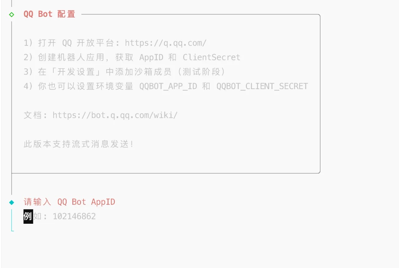 然后来到QQ开放平台申请机器人,自己使用无需企业资质,指定用户,指定群聊可访问即可。QQ开放平台https://q.qq.com/#/apps