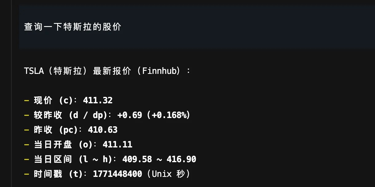 接下来,测试一下是否正确调用Finnhub,如果有返回数据则说明接入成功
