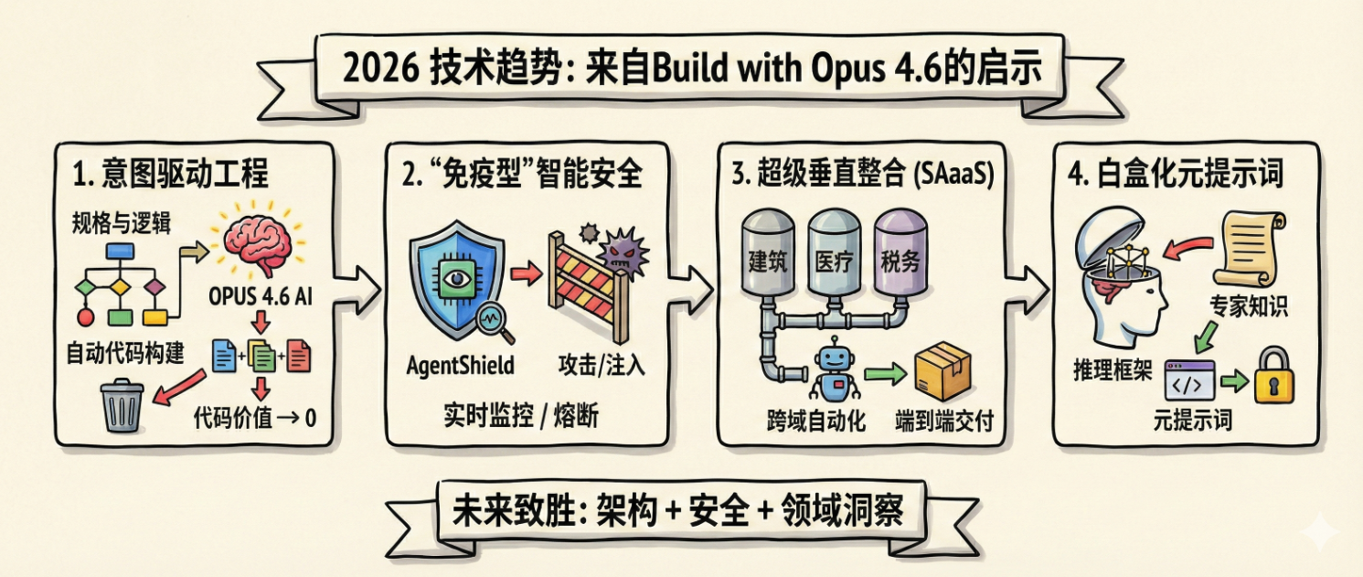 总而言之,“Built with Opus 4.6”不仅确立了 2026 年新一代 AI 工具的标杆,更深刻地提醒了全行业:大模型技术的单点突破红利已经耗尽。未来的致胜之道,属于那些能够将大模型的极限上下文吞吐能力、严密的系统架构思维、坚固的底层安全防卫机制,以及对垂直行业痛点的深度洞察完美融合的系统工程师与产品架构师。