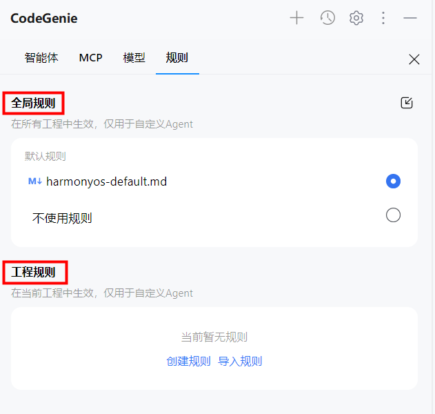 在 CodeGenie 的平台上,自定义智能体是核心驱动力,而自定义模型为它赋予了专业的智能。内置工具让智能体能够直接操作工程,MCP Servers 和自定义 Rules 则提供了必要的知识连接和规范约束。