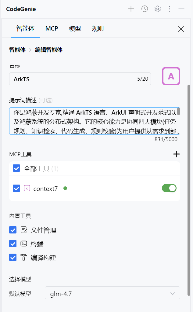在 CodeGenie 中,可以为智能体配置不同的专业模型: