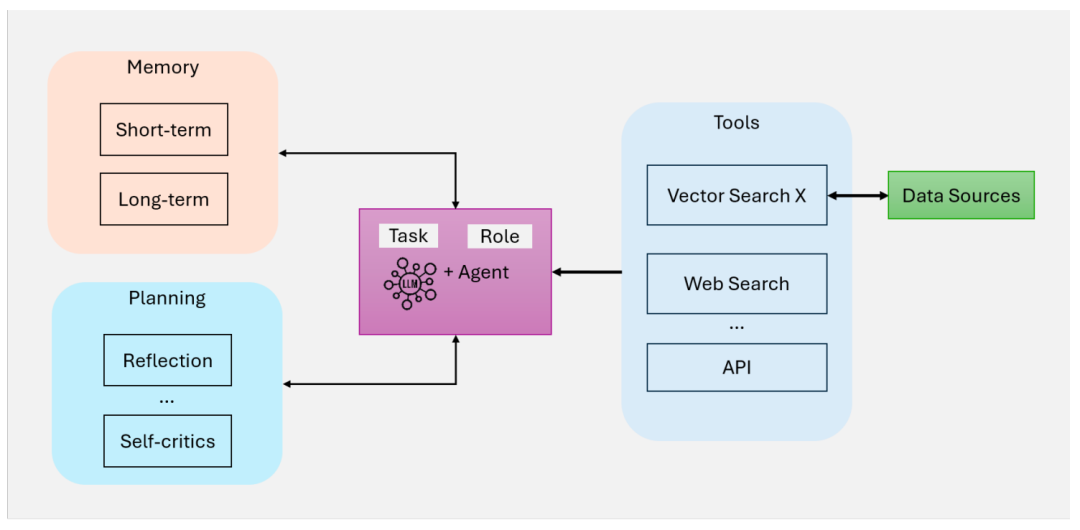 Agentic RAG的本质,不是替代前序阶段的RAG架构,而是通过智能体的调度,按需选用最优的模块组合,实现“复杂任务自主拆解、步骤自主执行、结果自主优化”。每个智能体都包含四大基础模块,程序员可重点掌握这个架构,搭建自主智能RAG系统: