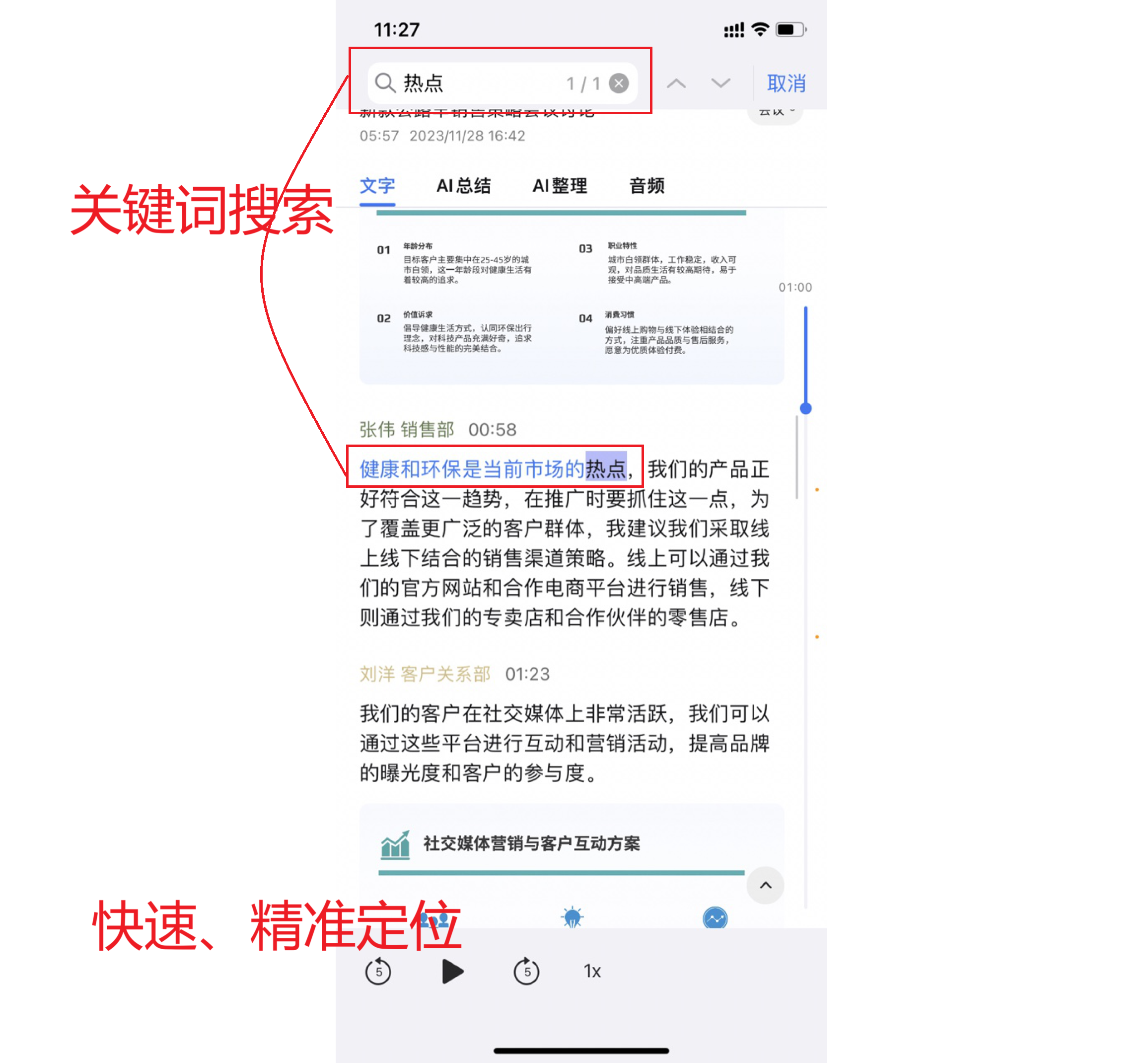 Step 2:开始录音,屏幕实时显示识别文字,关键议题时可打标记