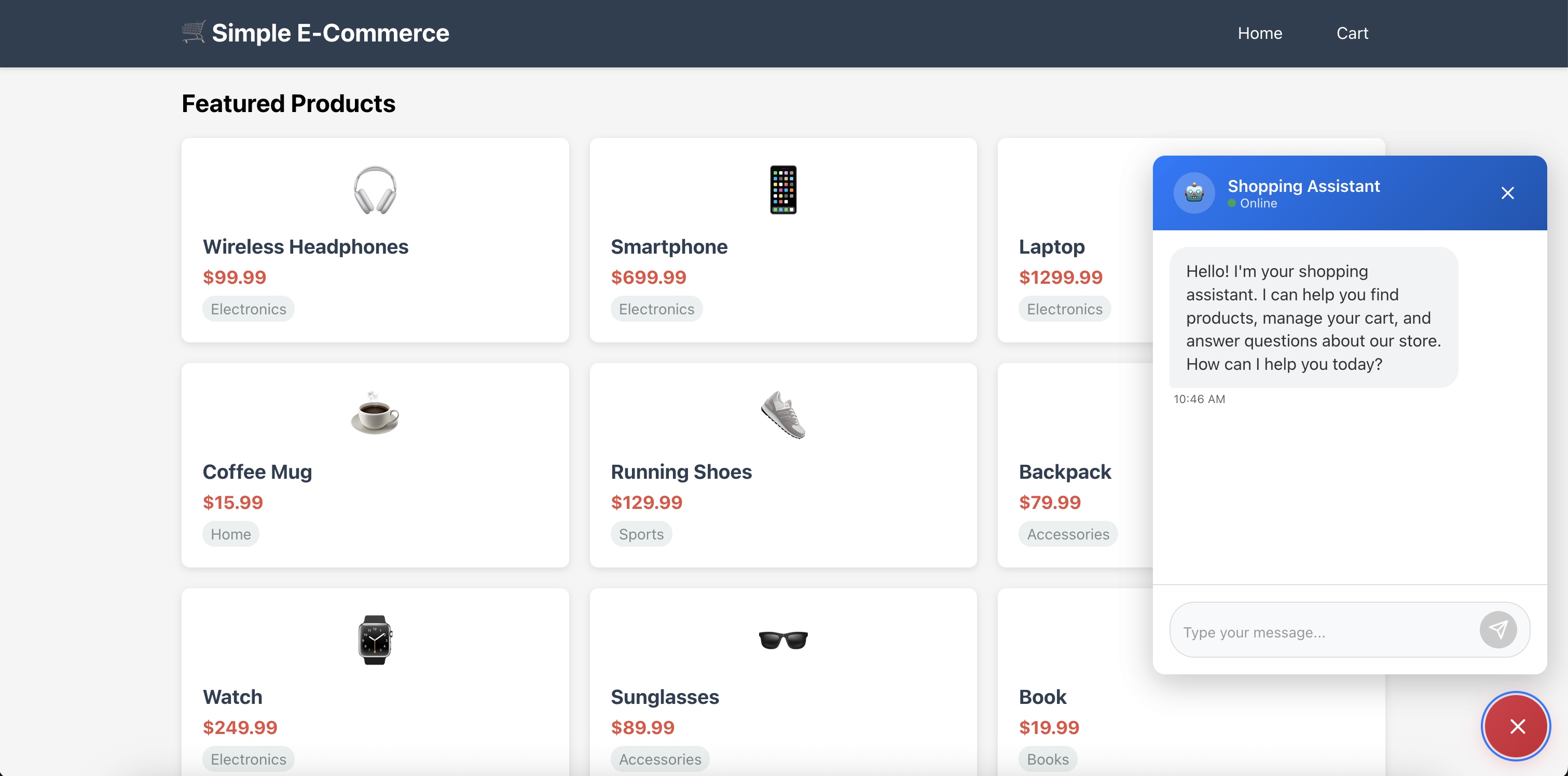 电子商务网站运行后,请使用以下问题测试聊天机器人: