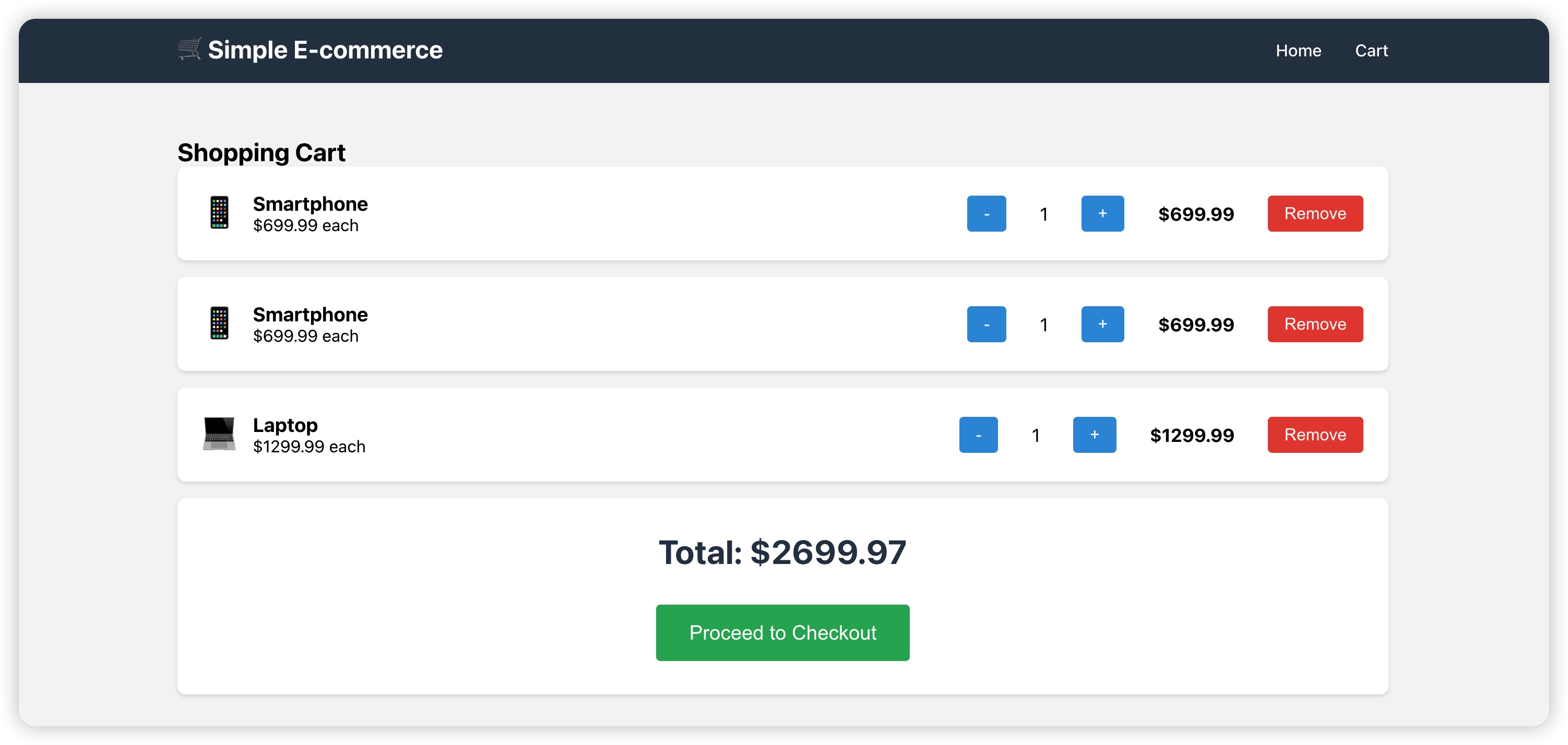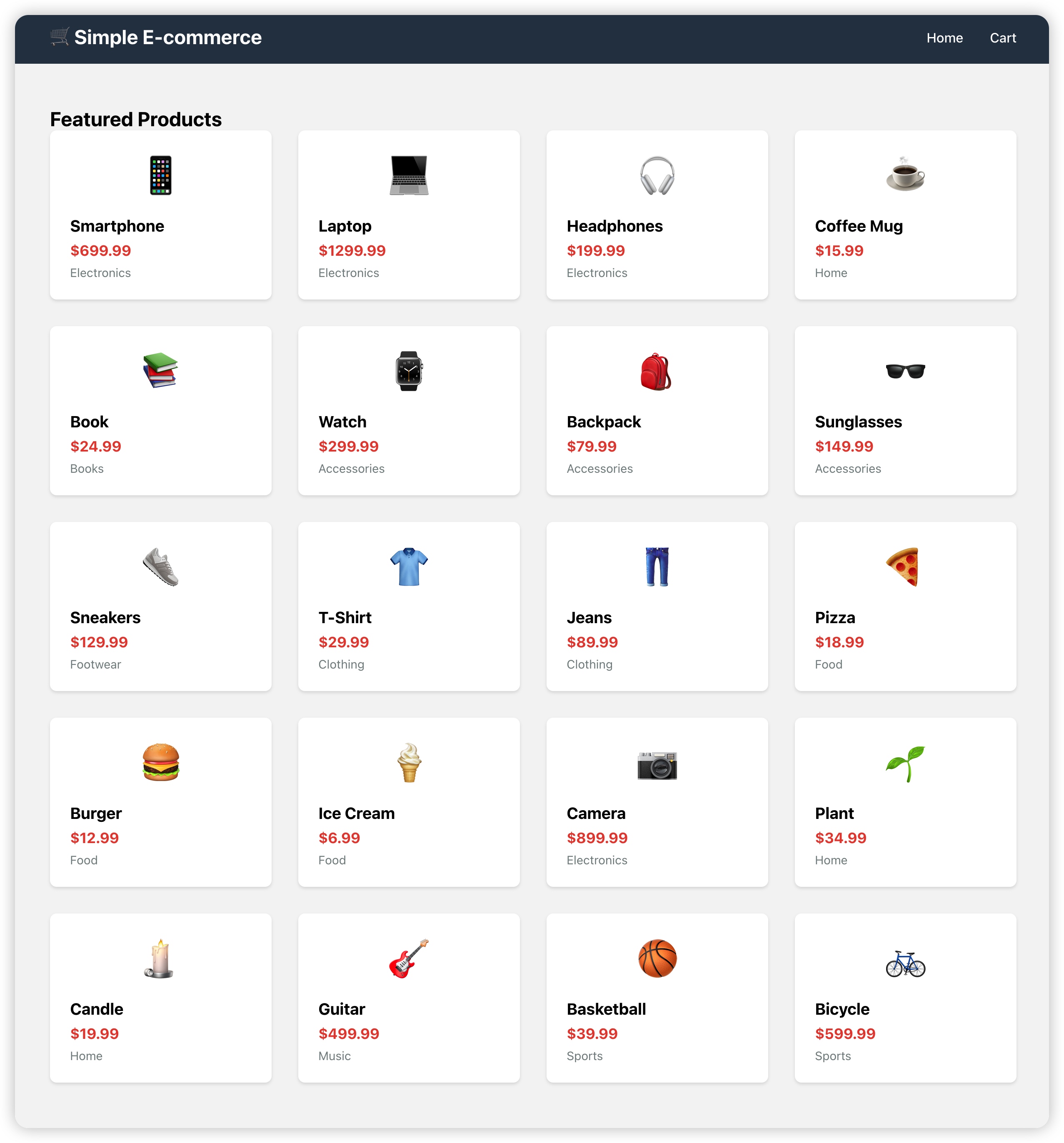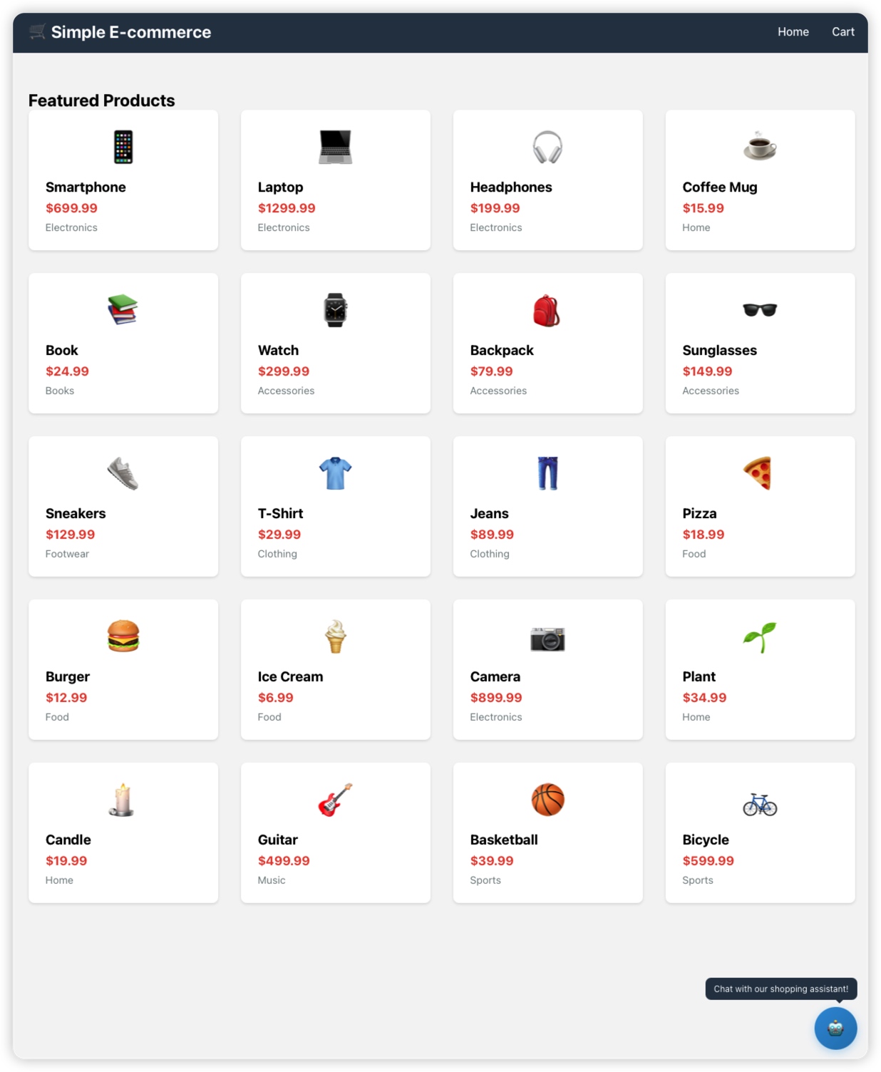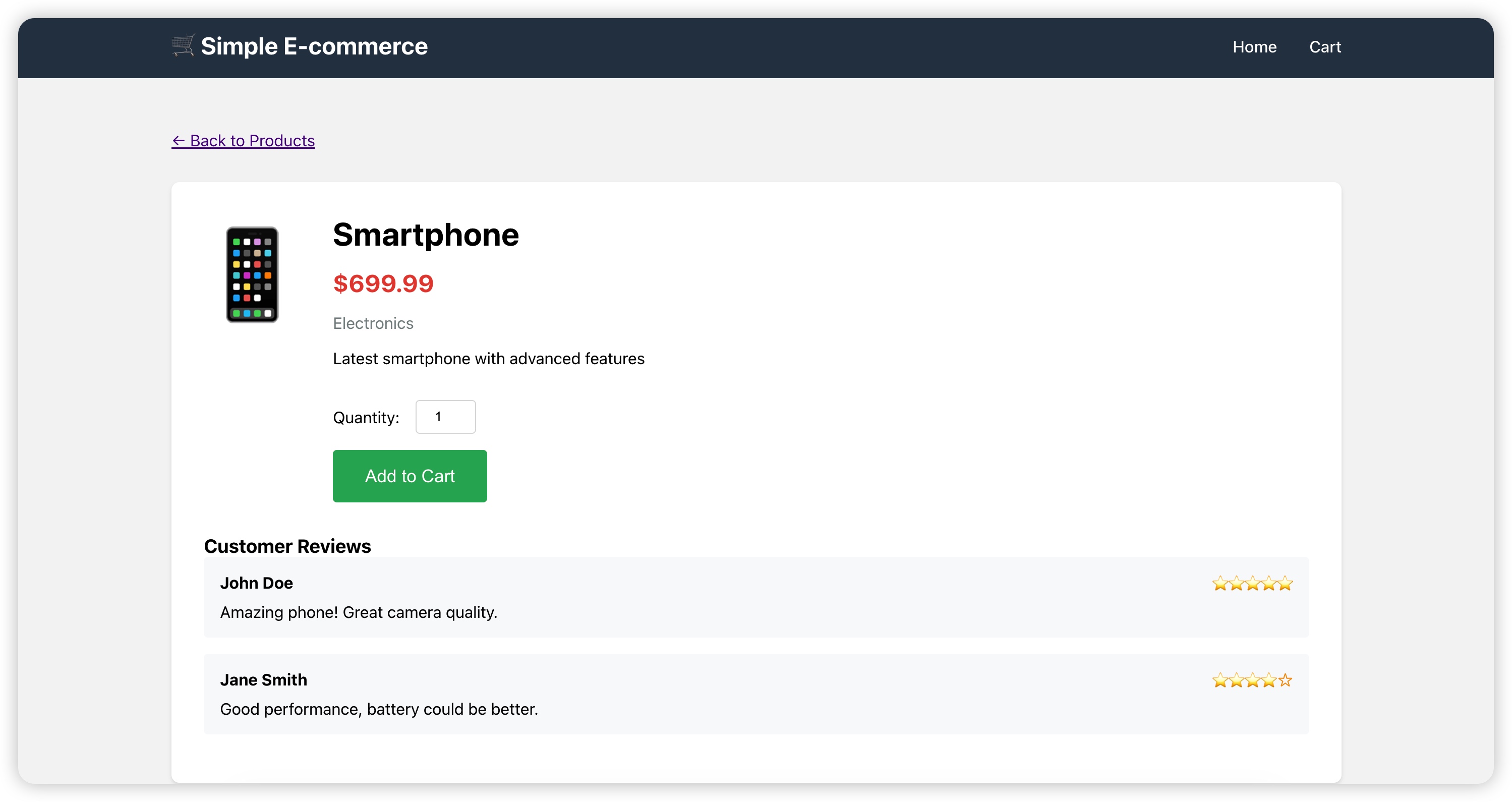 - 实现了核心电子商务功能,包括产品浏览、购物车管理和用户工作流程。