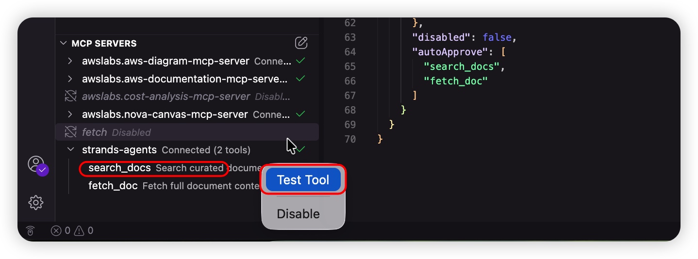 使用基于 Python 的 Strands Agents SDK 和 Bedrock Nova Pro 作为底层 LLM 构建聊天机器人服务,并配备一个 HTTP 服务器,用于接收来自前端弹出式聊天机器人的 API 请求。