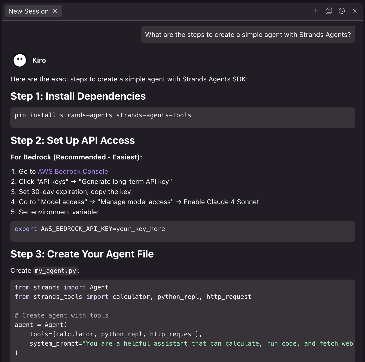 使用 Strands Agents SDK 和 Amazon Bedrock Nova Pro 的AI 聊天机器人