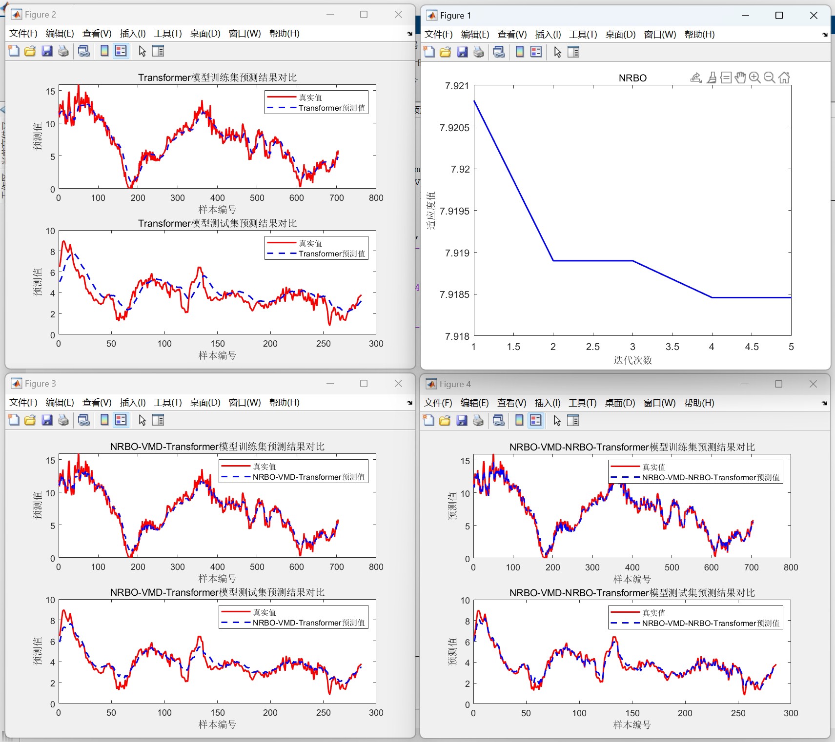 NRBO-VMD-NRBO-Transformer(双优化)、NRBO-VMD-Transformer、Transformer三模型单变量时序预测一键对比(仅运行一个main即可) Matlab代码。NRBO-VMD-NRBO-Transformer(双优化)、NRBO-VMD-Transformer、Transformer三模型单变量时序预测一键对比(仅运行一个main即可) Matlab代码。
