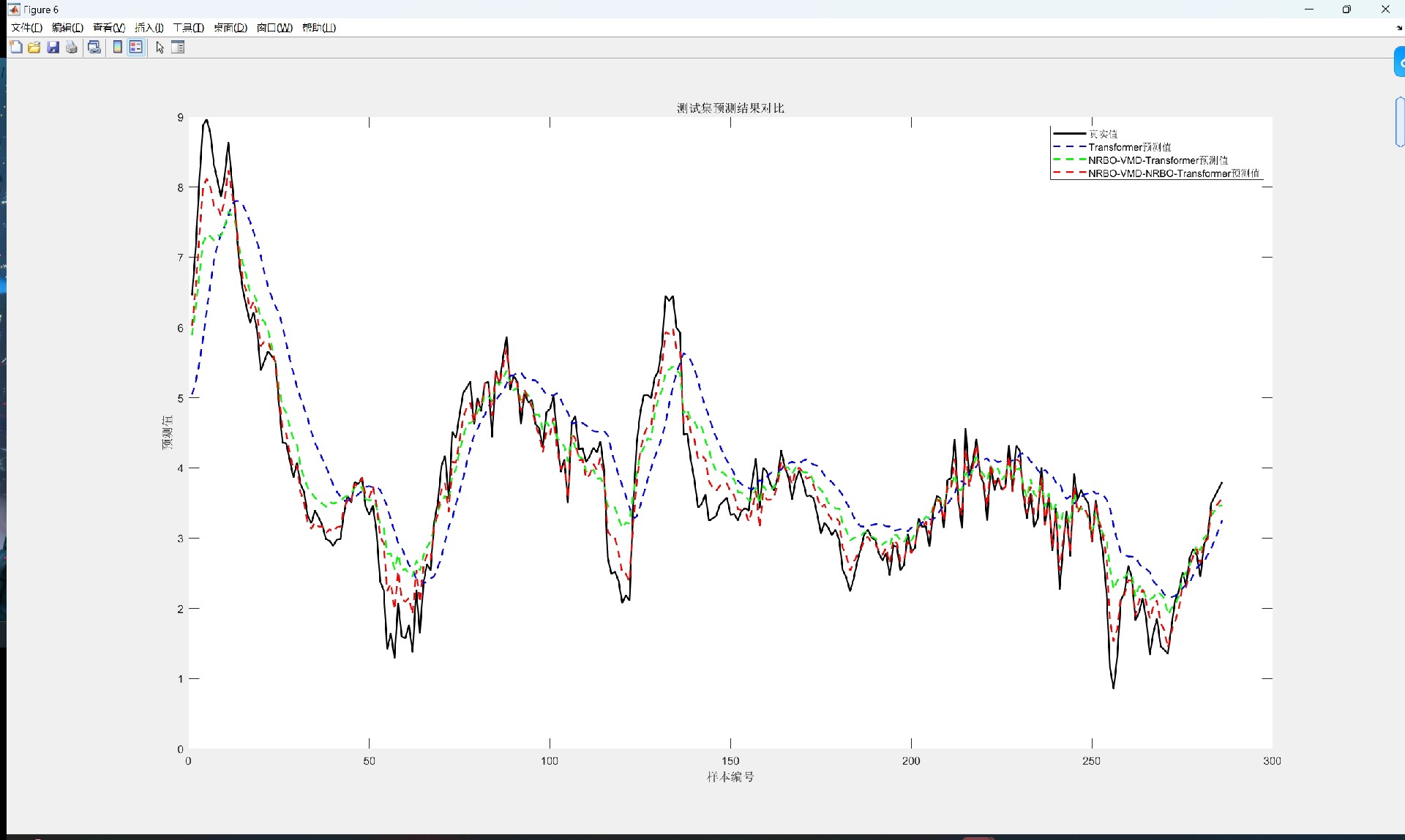 这里藏着三个层级:普通Transformer裸奔上阵,NRBO-VMD-Transformer相当于给模型加了前处理,而双NRBO版本更是连Transformer的超参数都优化了。实测某风电场的风速数据时,双优化版本R2冲到0.97,比基础版高8个百分点。
