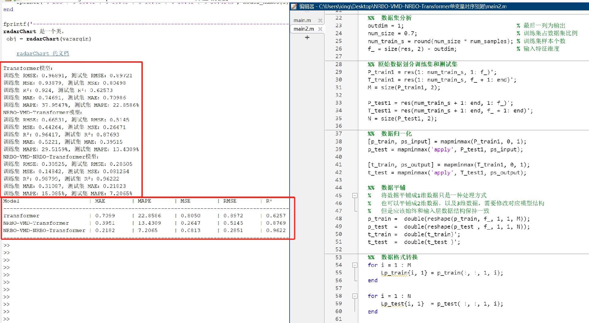 跑完分解就该模型PK了。main2文件直接甩出三模型对比:
