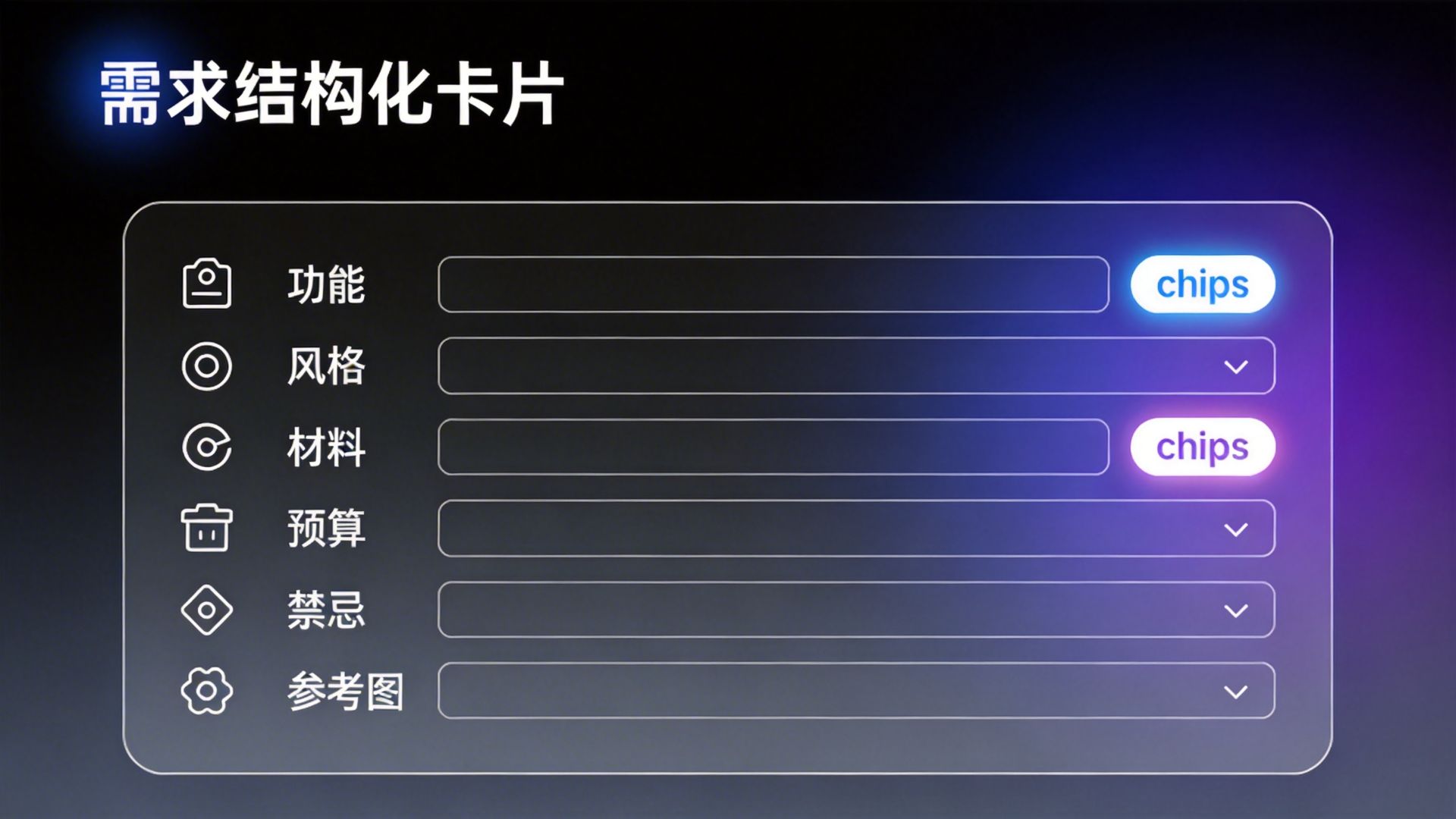 常见交付物 - 情绪板/风格板(Moodboard) - 概念草图(室内氛围、建筑体块、景观意向) - 关键词与提示词版本(含负面词、材质/光线/镜头)