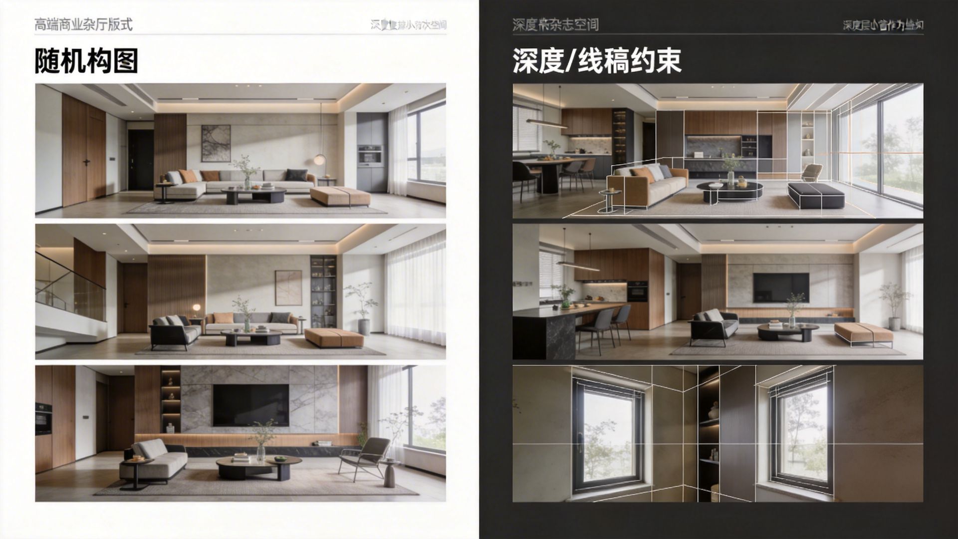 适合的工具类型 - “渲染器 + AI”:用 3D 锁定构图与材质,再用 AI 做氛围与细节 - “图生图 + 可控约束”:用深度/法线/分割保证结构,风格由提示词与参考图控制 - 后期修图与增强:局部改造、人物/绿化替换、细节补齐、清晰度提升