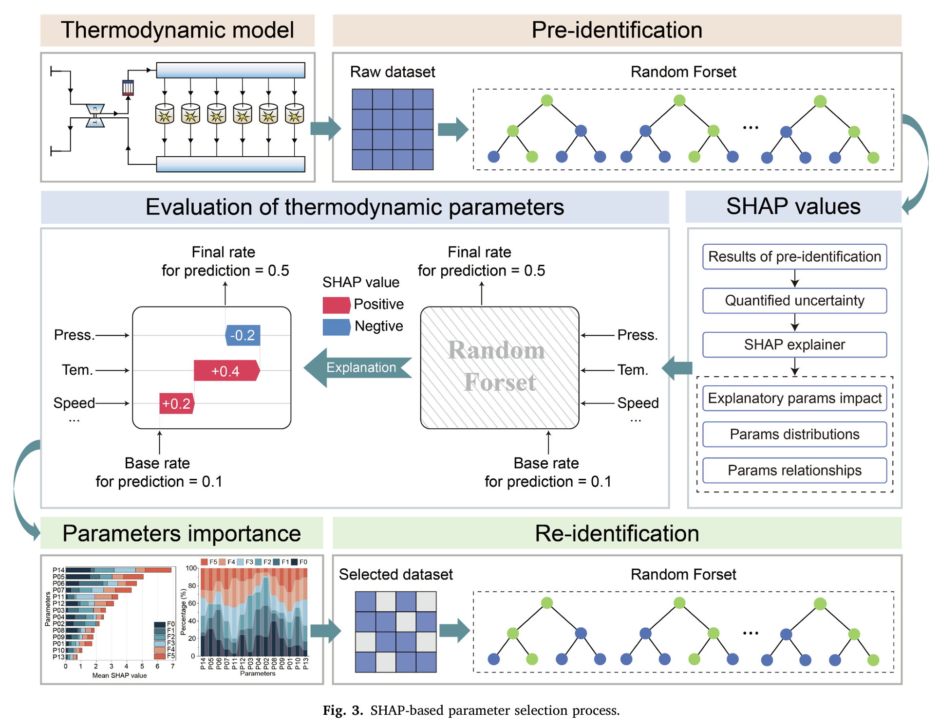 论文原图 Fig.3展示了 SHAP 基参数选择的完整流程,帮助理解 “预识别 - SHAP 量化 - 特征筛选 - 重识别” 的闭环逻辑。