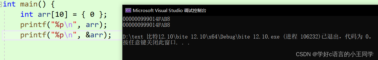由此可以得出数组名和&数组名打印的地址是一样的。