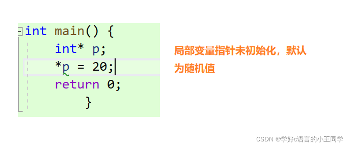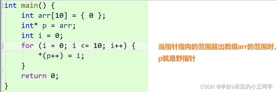 概念:野指针就是指针指向的位置是不可知的,(随机性的丶不正确的丶没有明确限制的)