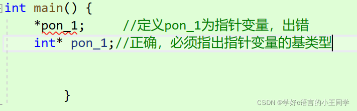 int *p; //定义p为指向整型变量的指针变量