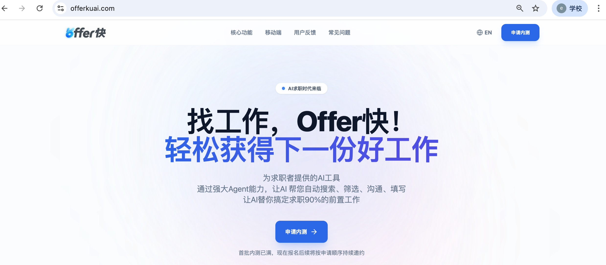国内首款求职 AI 智能体 Offer快(Offerkuai),以 “自主执行 + 精准适配” 的全流程解决方案,让求职从 “被动海投” 变成 “主动匹配”,帮普通人高效拿下心仪 Offer。