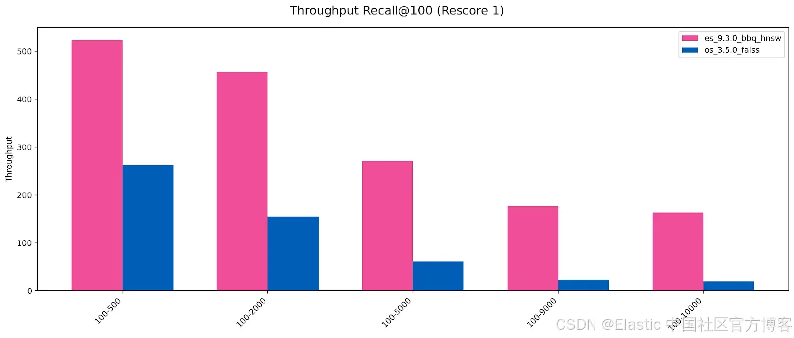 s_n_r_value:size_numCandidates_rescoreOversample 的缩写(在这些测试中 k 和 numCandidates 设置为相等),例如 100_500_1 表示 size=100、numCandidates=500、k=500、rescore oversample=1