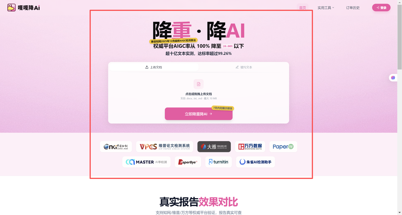 实测体验: 这是我见过最稳的中文降AI工具。上传文档后点击一键降AI,仅需3分钟就能降好,AI率直接从99.9%降至0%,成功率超高。