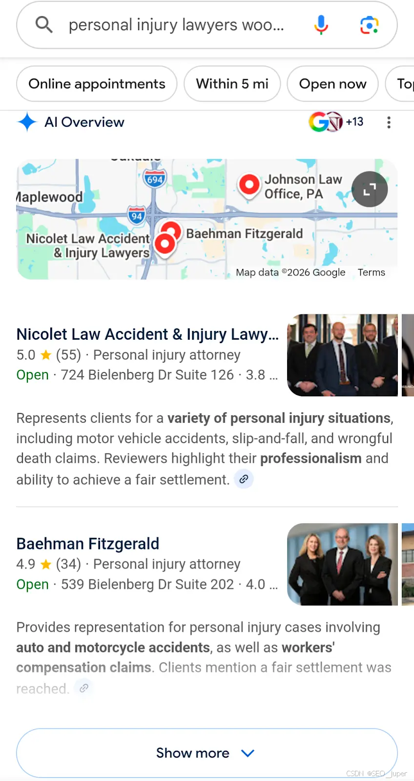 事实上,谷歌有时会展示一个由人工智能驱动的特殊结果版本,称为“本地套餐”,列出几家本地商家并配有地图。