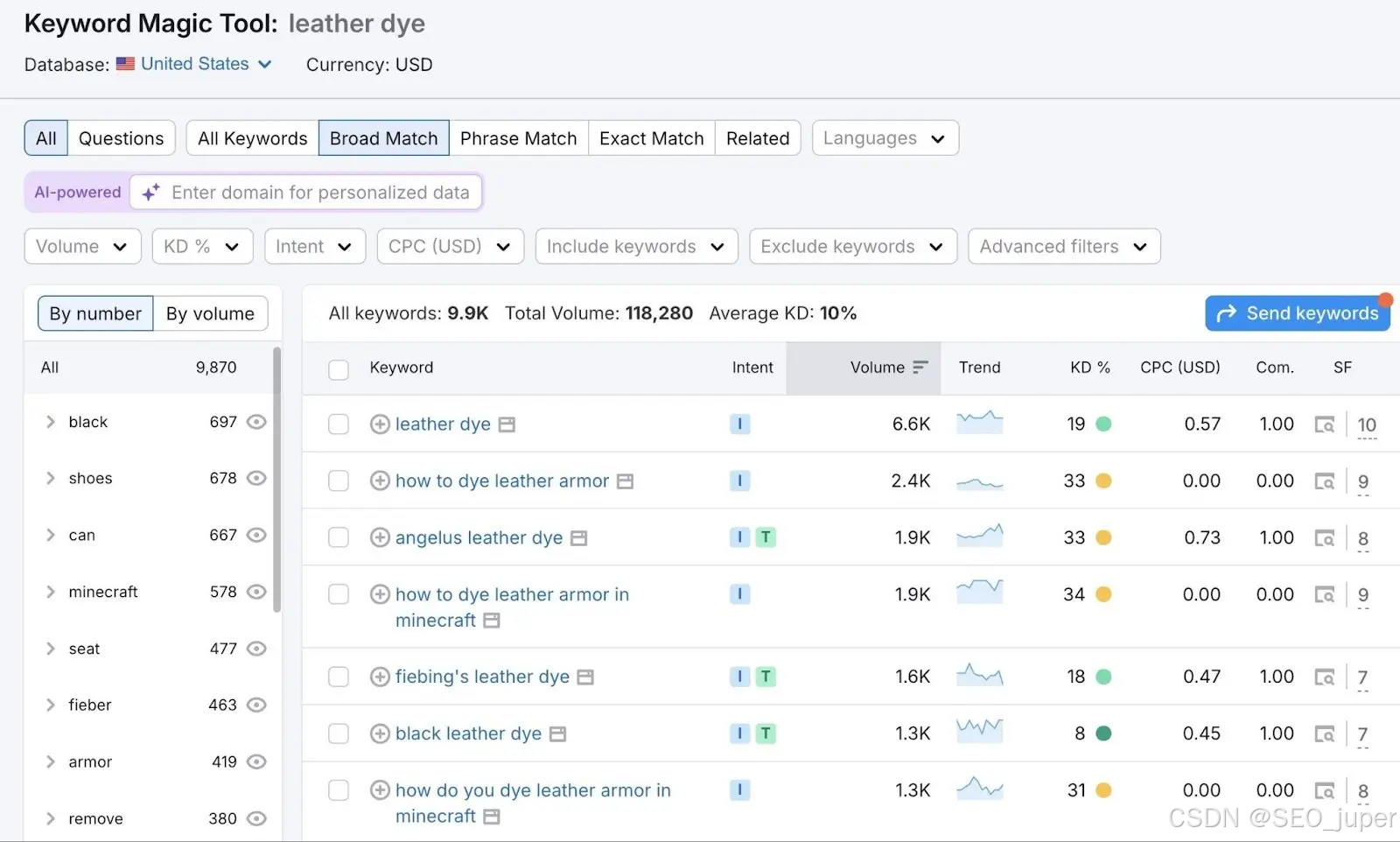 Semrush 的关键词魔法工具可以帮助您找到适合产品描述的关键词。