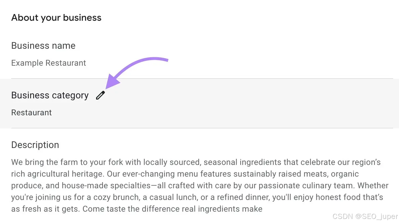 在撰写你的谷歌商家资料描述时,请考虑包含几种变体。避免以听起来不自然的方式过度使用关键词。这被称为关键词堆砌,它不仅损害用户体验,也会影响你在搜索中获得曝光的机会。