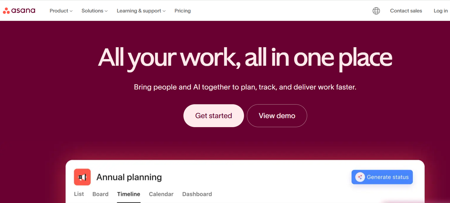 第五款推荐的甘特图制作工具是 Asana,这是一款在海外非常受欢迎的工作管理工具和协作平台,主打轻量型操作和团队协作,甘特图功能虽然不是其唯一核心,但实用性很强,适合重视用户体验、设计感和流畅协作的团队。
