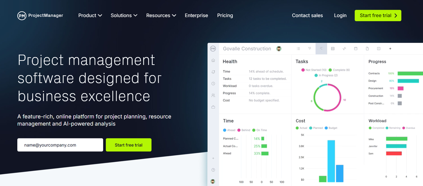 第四款推荐的甘特图制作工具是 ProjectManager,听名字就知道,它不仅仅是一款单纯的甘特图制作工具,更是一个功能全面的项目管理平台,甘特图功能是其核心引擎,适合需要全流程项目管理的团队使用。