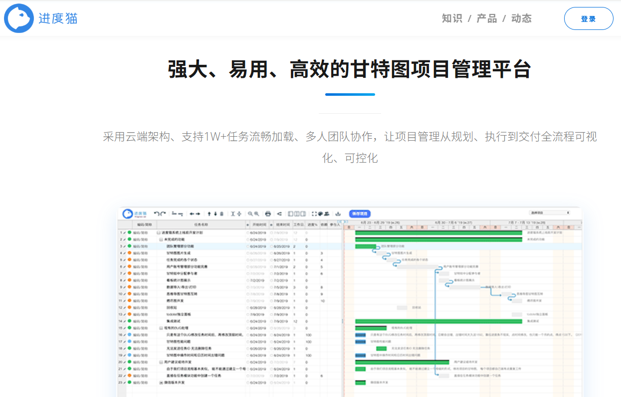 第三款推荐的甘特图制作工具是进度猫,这款工具主打轻量化操作和团队协作,是我后来工作中常用的一款,尤其适合 10-50 人的中小型团队使用,贴合国内的办公习惯,上手难度低,新手也能快速适应。