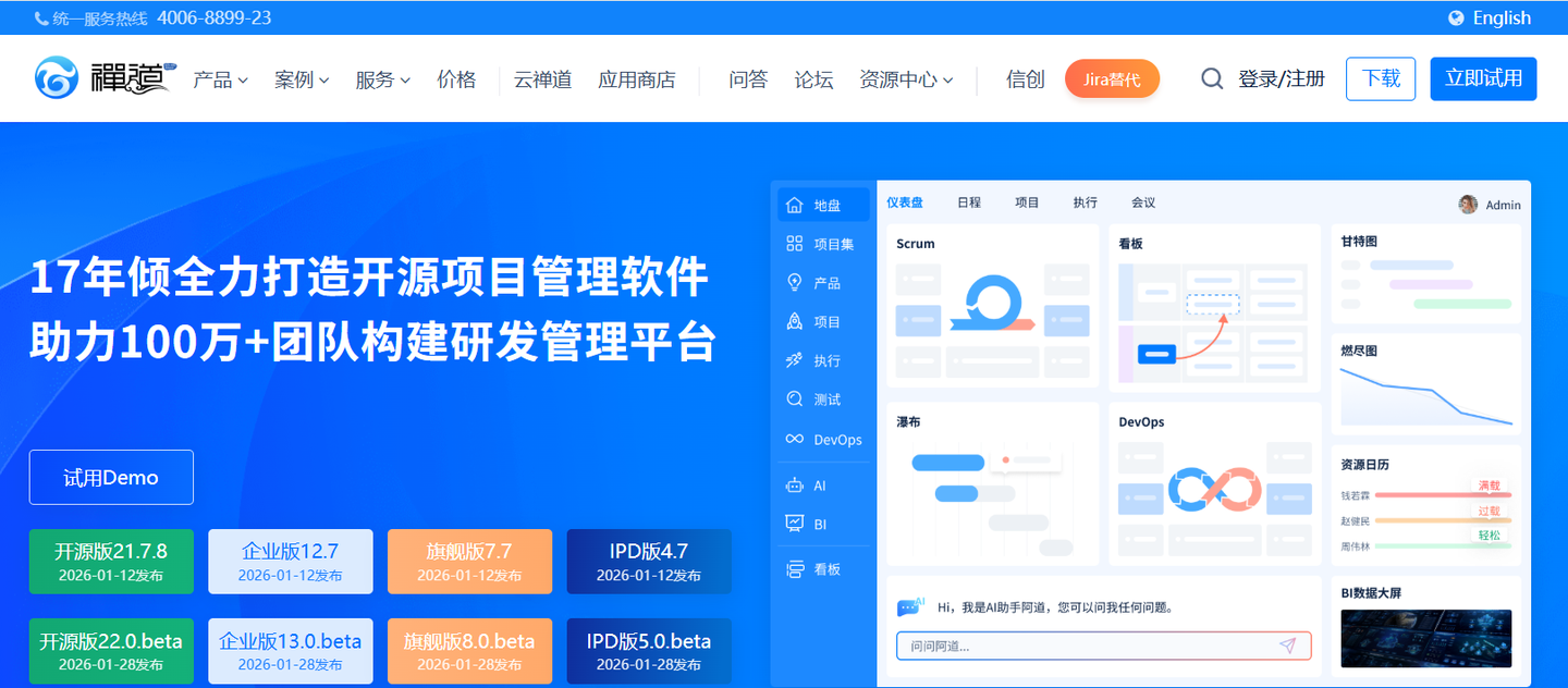 六、禅道:开源免费,适配研发项目的甘特图制作工具