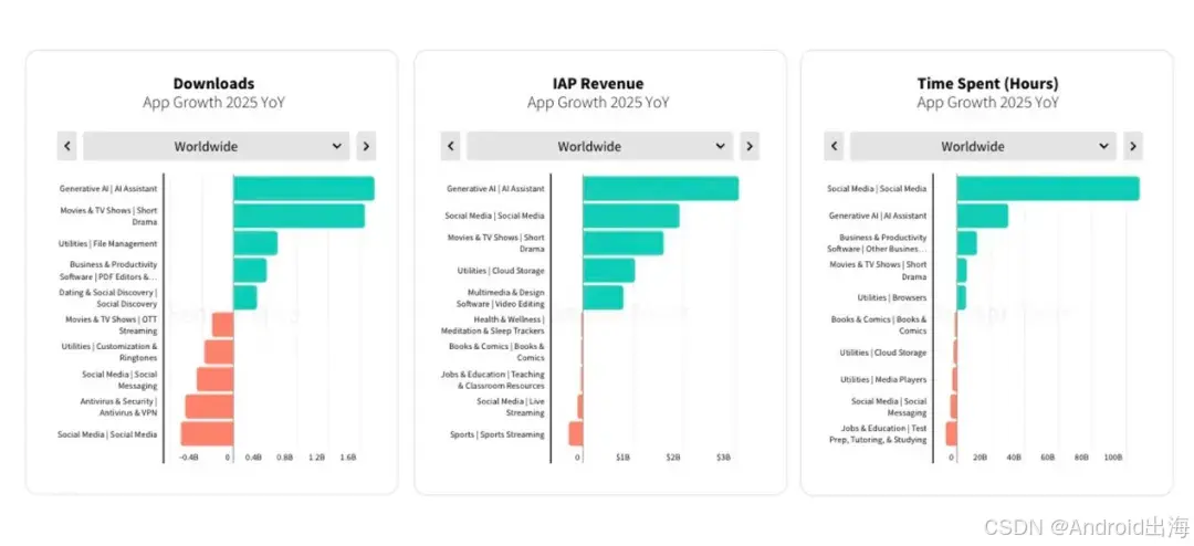 2025年,有两个细分赛道实现了爆发式增长:AI助手与短剧应用。
