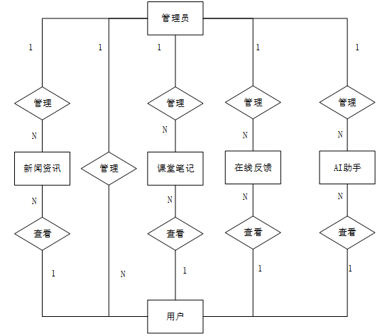 系统界面简洁直观,操作流程符合用户习惯,确保用户无需额外培训即可快速上手。首页布局合理,突出新闻资讯与课堂笔记推荐功能,便于用户快速获取信息。新闻资讯浏览与课堂笔记查询功能支持多维度搜索,用户可依据关键词、分类等条件精准查找所需内容。系统响应迅速,页面加载时间不超过3秒,确保用户操作流畅无卡顿。AI助手提供实时对话功能,能够快速响应用户问题,辅助学习与答疑。个人中心功能完善,用户可便捷管理基本信息、收藏内容及在线反馈记录。