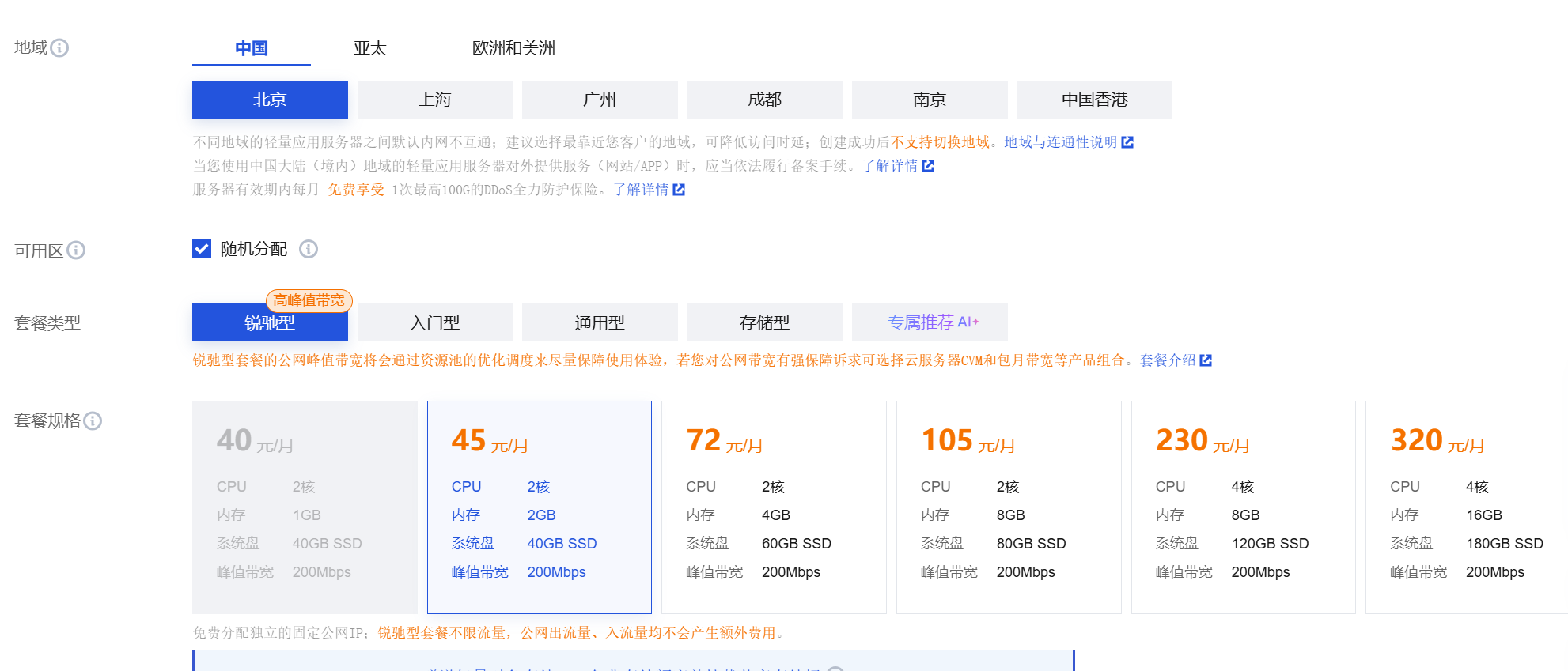 地域:选择北京(低延迟接入社交平台)套餐规格:2核2GB40GSSD。