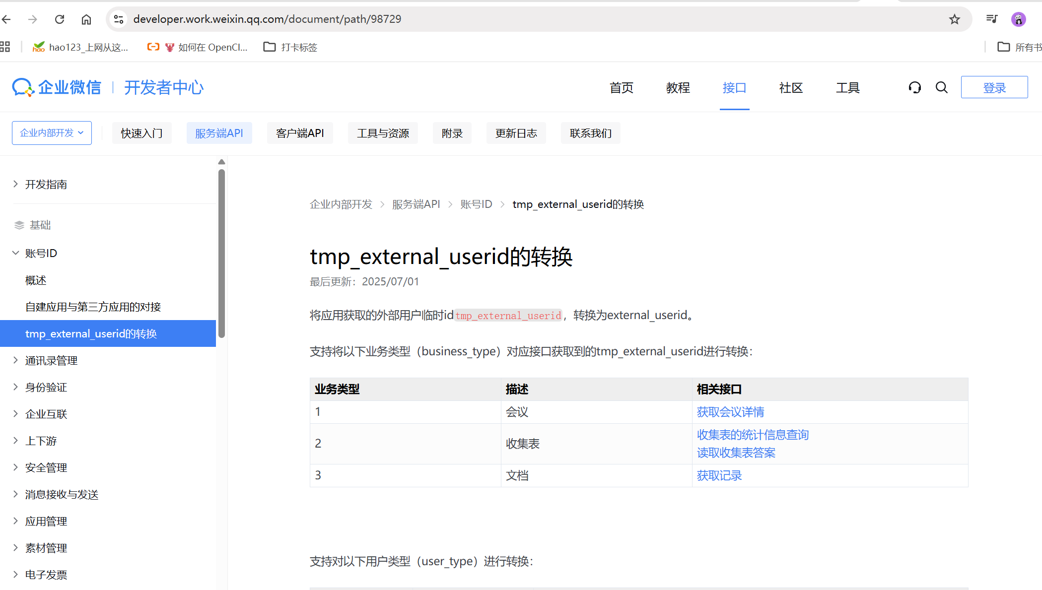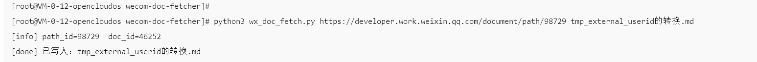 python wx_doc_fetch.py https://developer.work.weixin.qq.com/document/path/98729 tmp_external_userid的转换.md