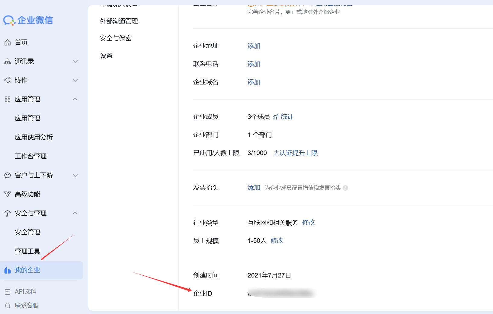 Corp ID,我的企业-企业信息”页面,在页面底部找到企业ID。