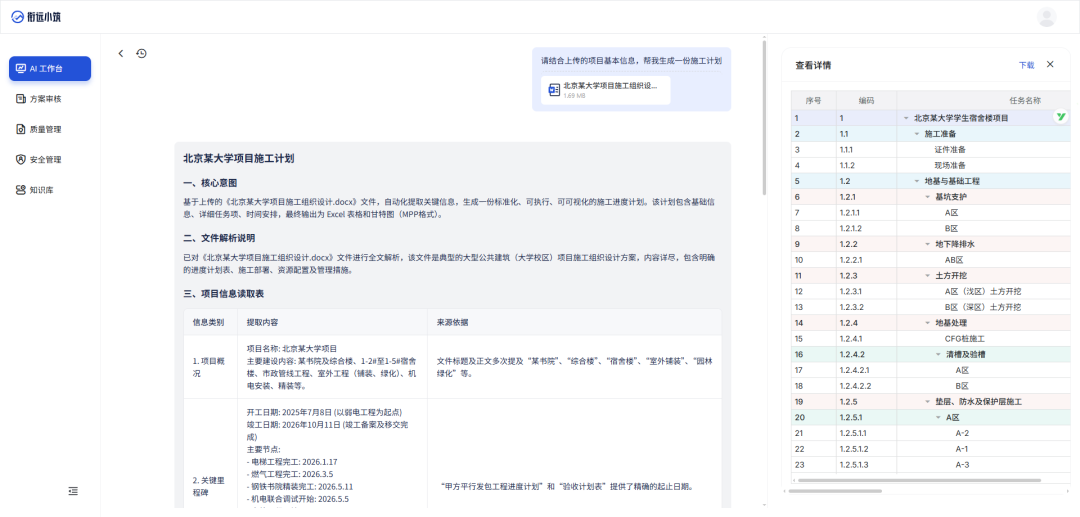 AI生成施工计划(来源:https://arc.frontis.top/tsinghua-maas/agent/ai-workbench)