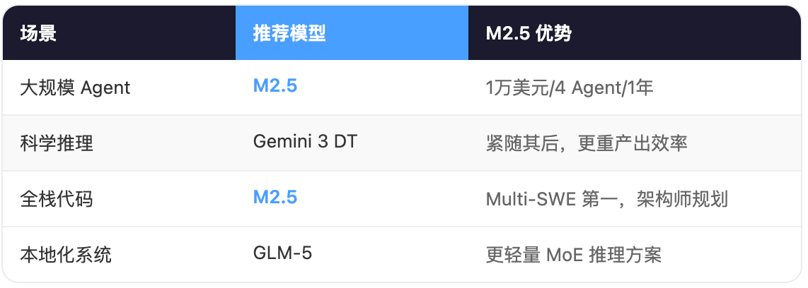 但如果你的场景是:大规模智能体部署、全栈代码开发、高频次工具调用、长链路自动化任务——M2.5 目前可能是性价比最优解。