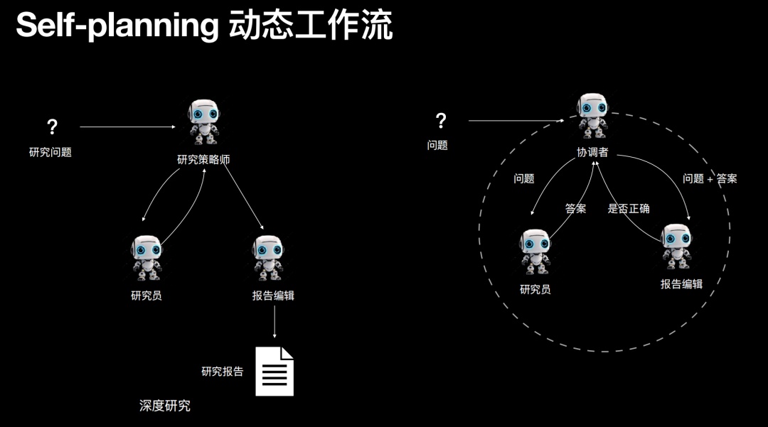 - Self-planning 动态流程同样可以获取的一致及可预测的结果。例如:通过运行结果的验证及迭代