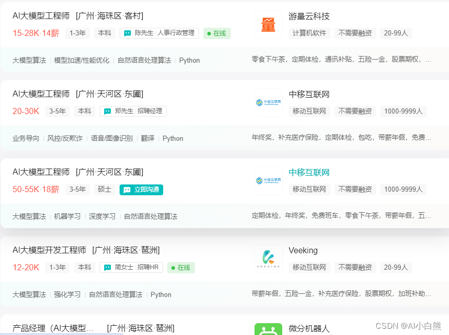 - AI模型研发工程师:负责设计、开发和优化AI大模型,包括模型的架构、算法和参数调优。