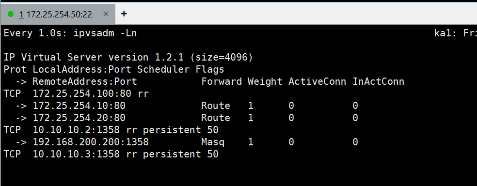 把ka1中的keepalived关闭ka2中自动生成lvs策略