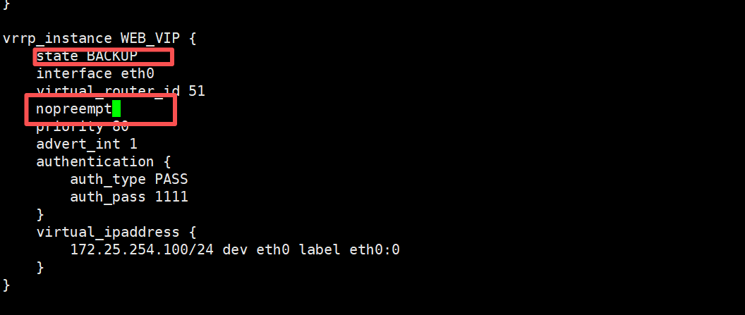 2.5.1.抢占模式( 默认的,谁优先级高就把vip放到哪里)