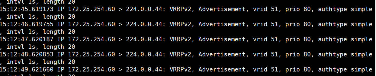 - 心跳检测 (组播): Master 会以极高的频率(通常是每秒 1 次)向网络中发送 VRRP 组播包(默认地址是 224.0.0.18),告诉所有人:“我还活着,我是老大”。
