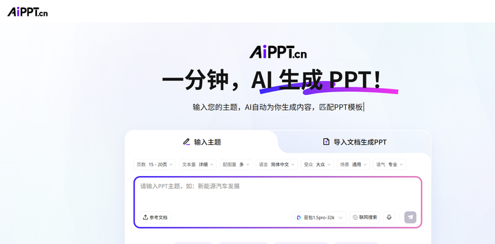 正是这些优势,让 ai 制作 ppt 免费工具成为职场人的必备办公神器,尤其是经常需要做 PPT 的小伙伴,用好这些工具,能有效提升工作效率,摆脱熬夜做 PPT 的困扰。接下来,就为大家详细介绍 9 款好用的 ai 制作 ppt 免费工具,第一款就是大家关注度很高的 AIPPT。