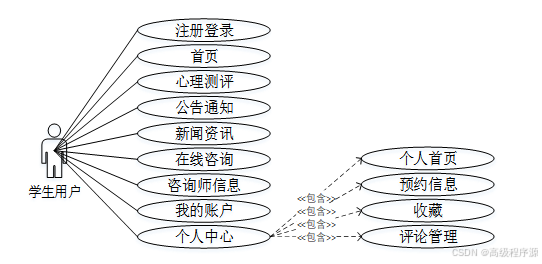 图3-1大学生心理健康智能咨询系统学生用户角色用例图